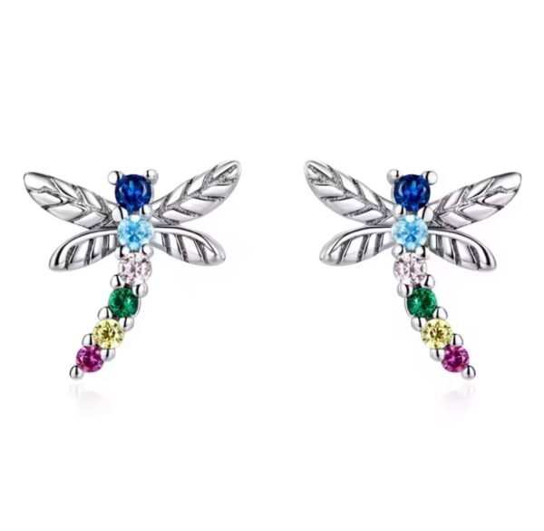 Brinco Colorido Libélula Prata