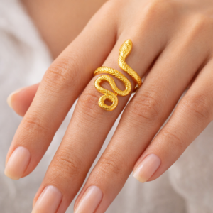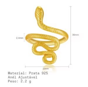 🐍✨ Anel ajustável em prata 925 e banho de ouro 18k, com design em formato de cobra, uma joia moderna e cheia de personalidade. Símbolo de renovação e força, é a peça perfeita para quem ama acessórios marcantes e cheios de estilo.