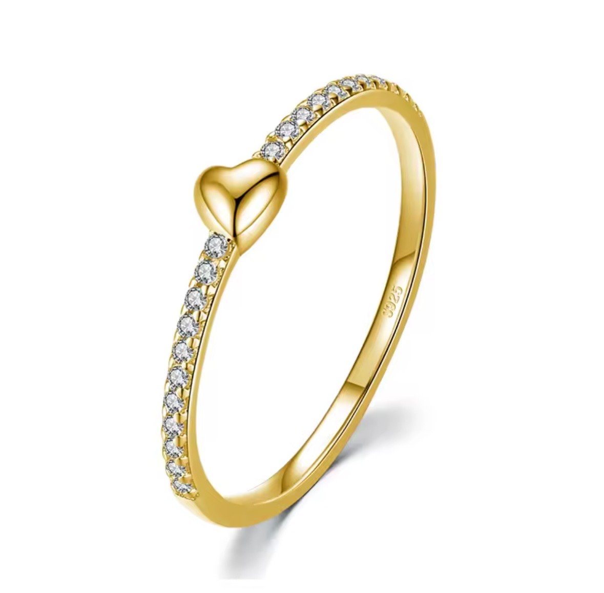 Anel em Prata 925 e banho de Ouro 18K, com delicado coração central e pedrarias nas laterais que trazem brilho na medida certa. Um modelo romântico e elegante, perfeito para simbolizar amor e sofisticação no dia a dia.