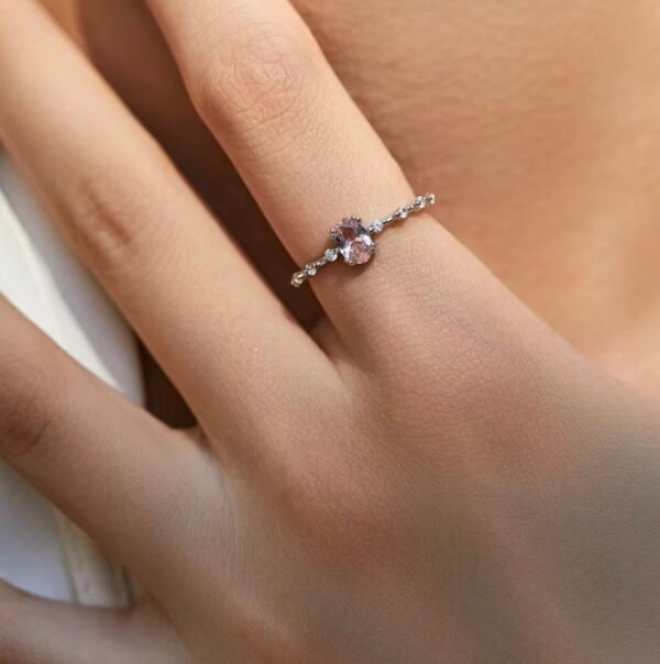 Anel Lia Rosa Prata