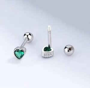 Prata 925. Pedras: Zircônia Verde. Sistema do Fecho: Parafuso.