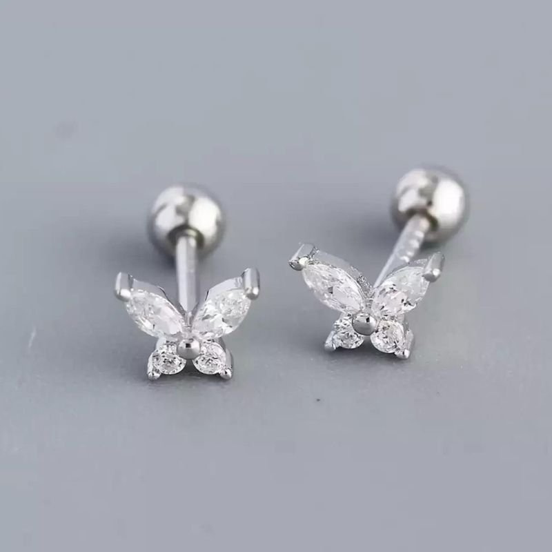 Prata 925. Pedras: ZircĂ´nias Cristal. Sistema do Fecho: Parafuso.