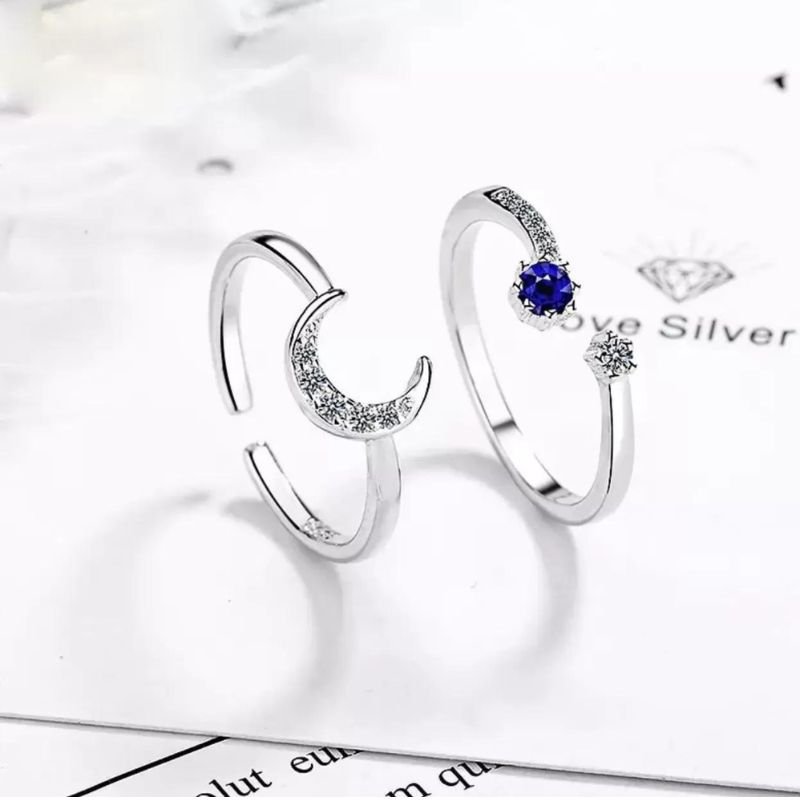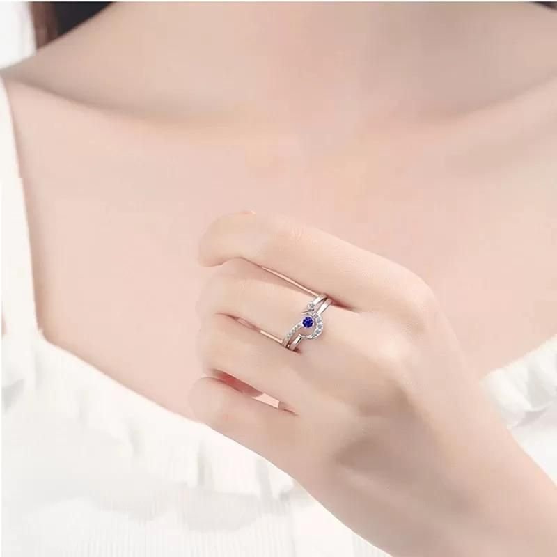 Banho de Prata 925 com Pedras de Zircônia Cristal e Azul. Tamanho: Ajustável ao dedo