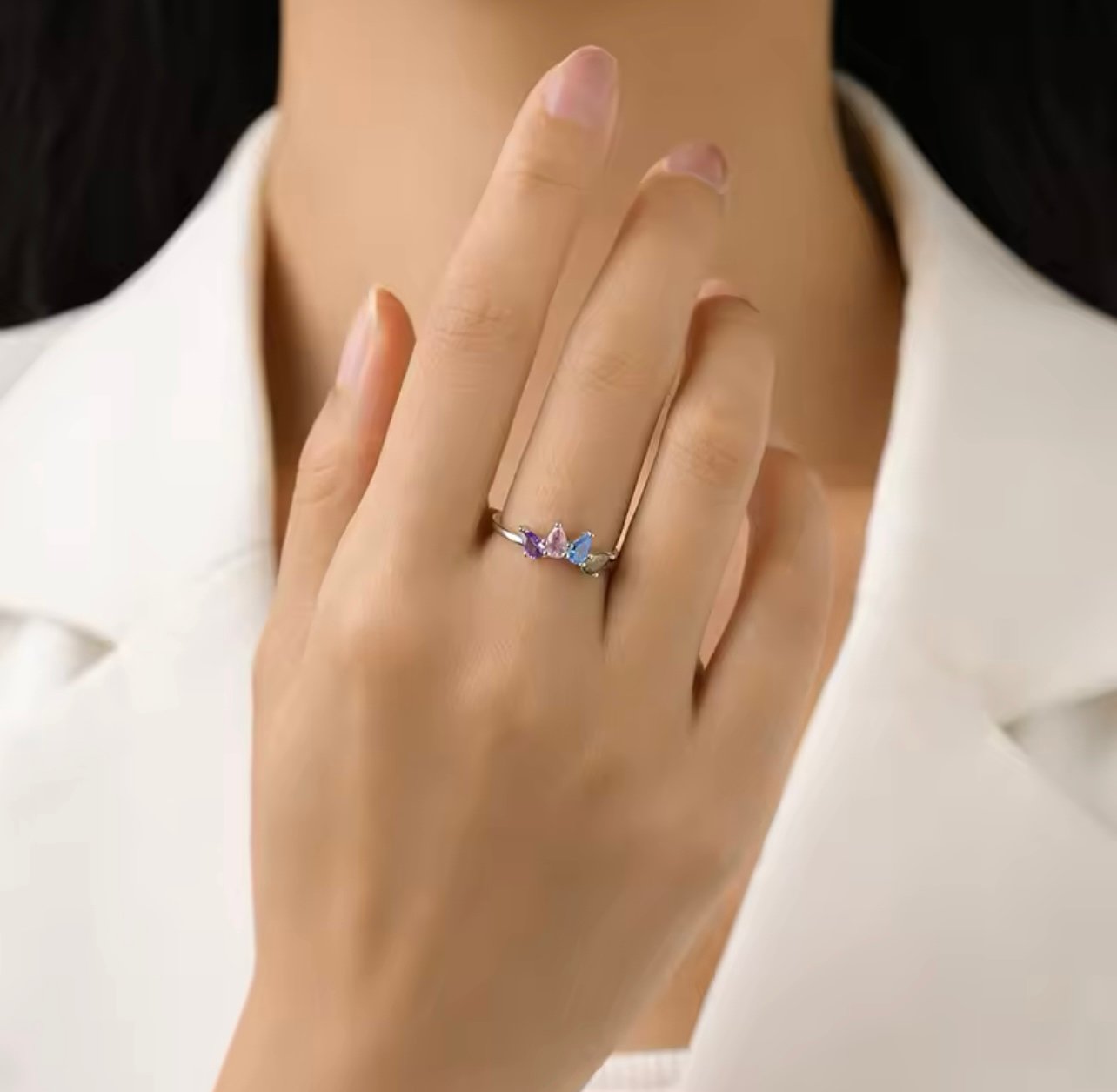Pedras Zircônias cor: azul, rosa, roxo e verde.