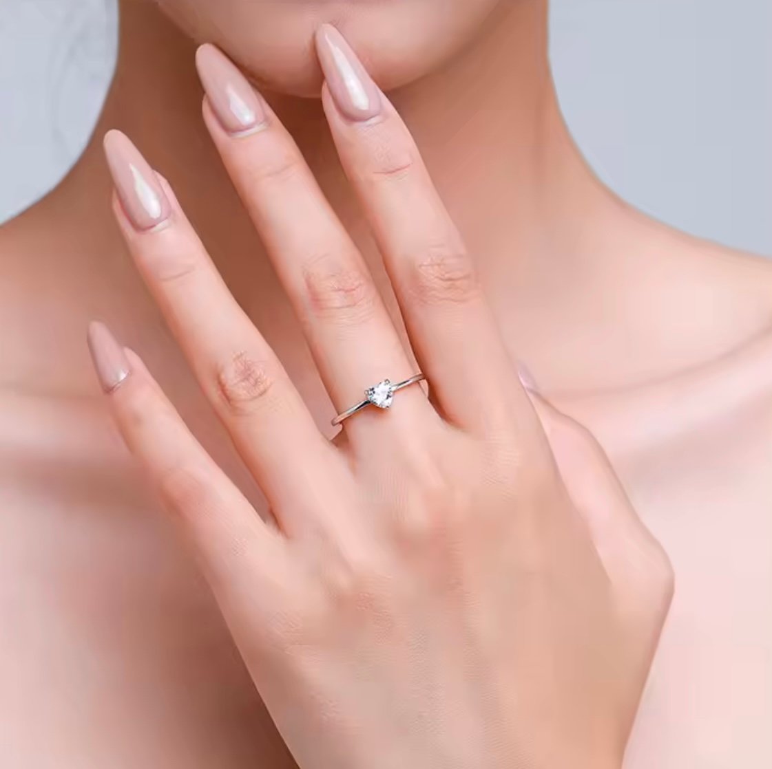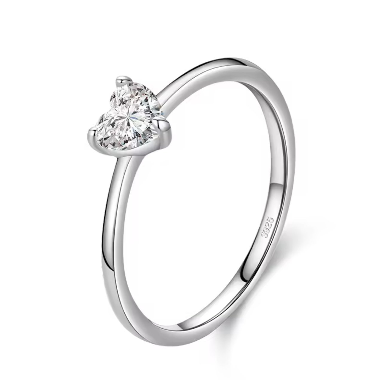 Anel em Prata 925 com zircônia em formato de coração, medindo 0,6 cm.