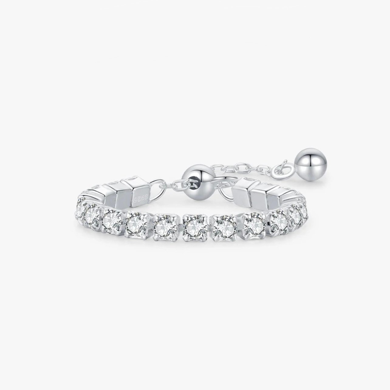 Prata 925 com pedras de zircônia cristal. Tamanho: Ajustável ao dedo