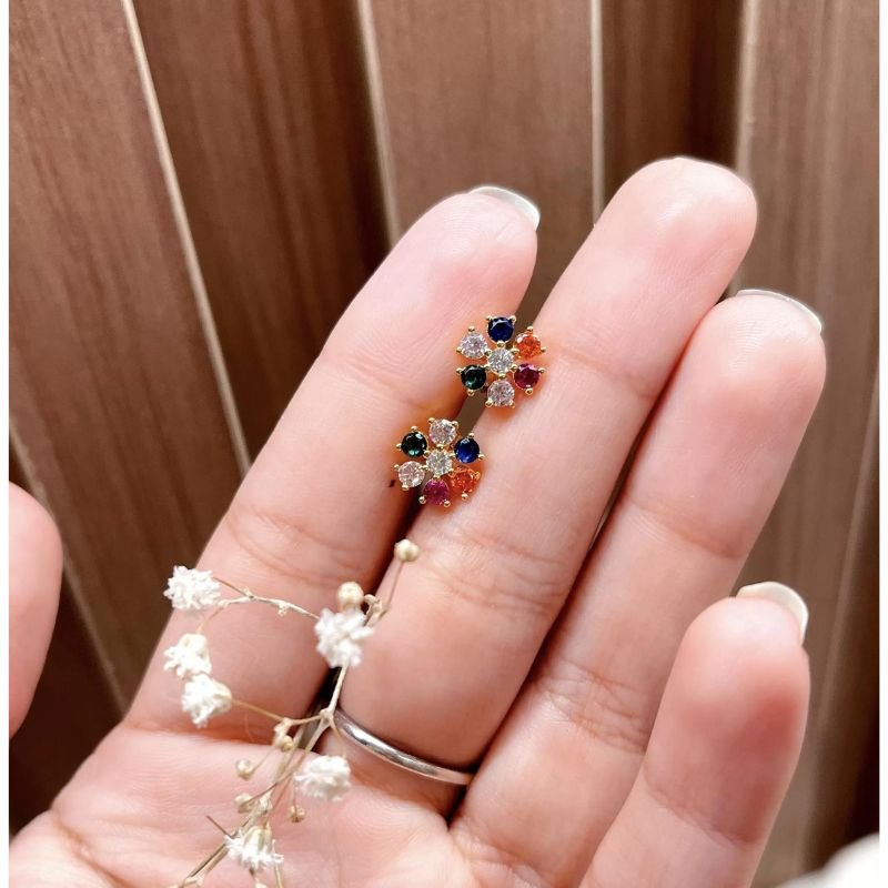 Cobre com banho Ouro 18K Pedras em Zircônia Colorido Sistema do Fecho: Tarraxa. Tamanho: 9 mm