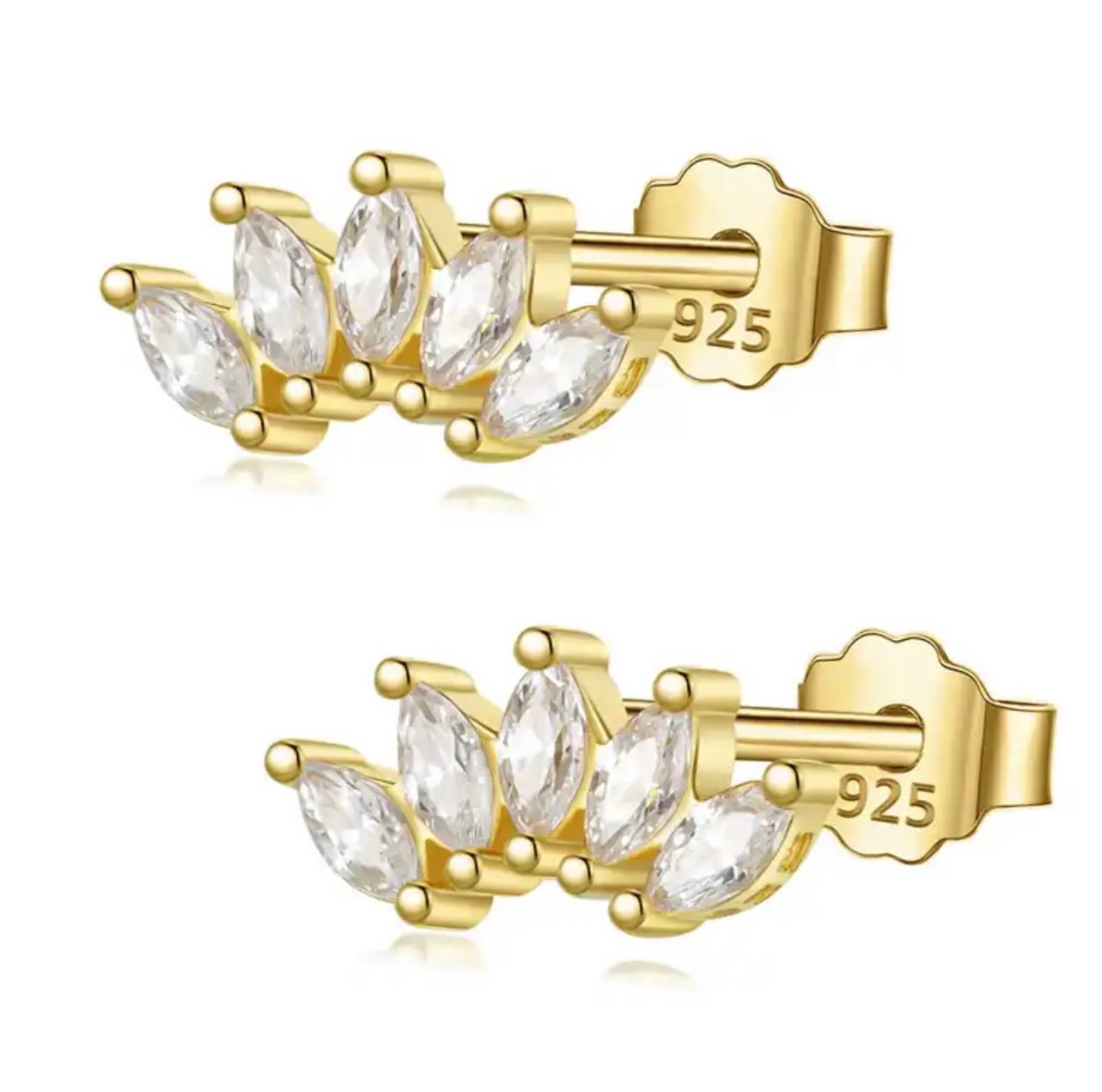 Prata 925 com Banho Ouro 18K. Pedras de Zircônia Cristal. Sistema de fecho: Tarraxa.