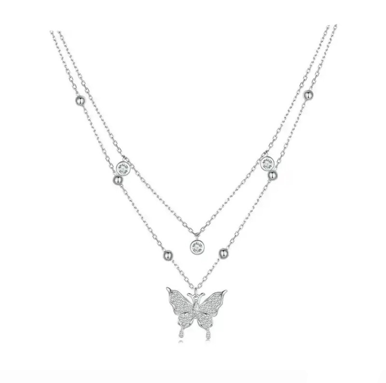Colar Borboleta Cristal Duplo Prata
