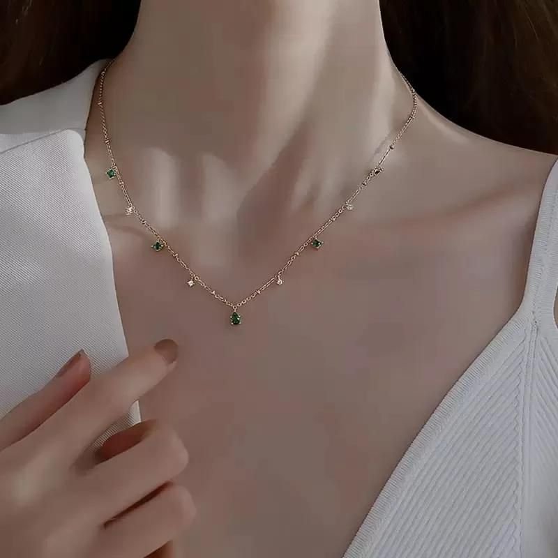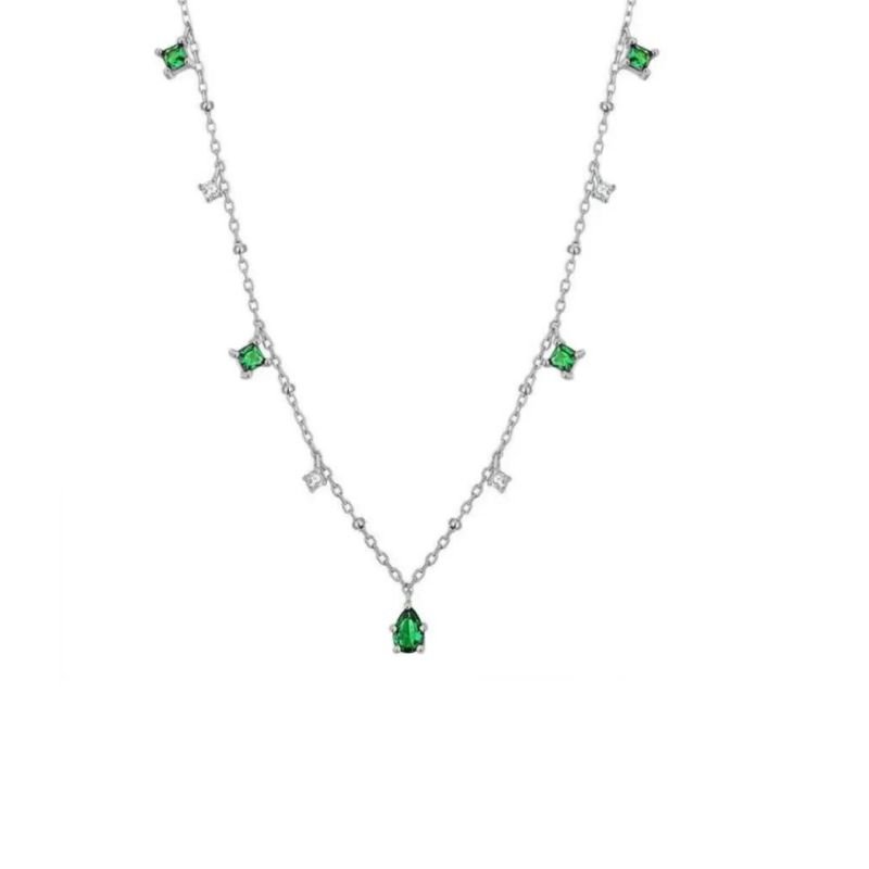 Prata 925 Pedras em zircônia verdes. Tamanho da corrente: 40cm – 45 cm
