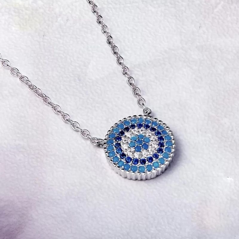 Prata 925 Pedras em Zircônia Cristal e Azul Tamanho da corrente: 45 cm Tamanho do pingente: 1.2 cm
