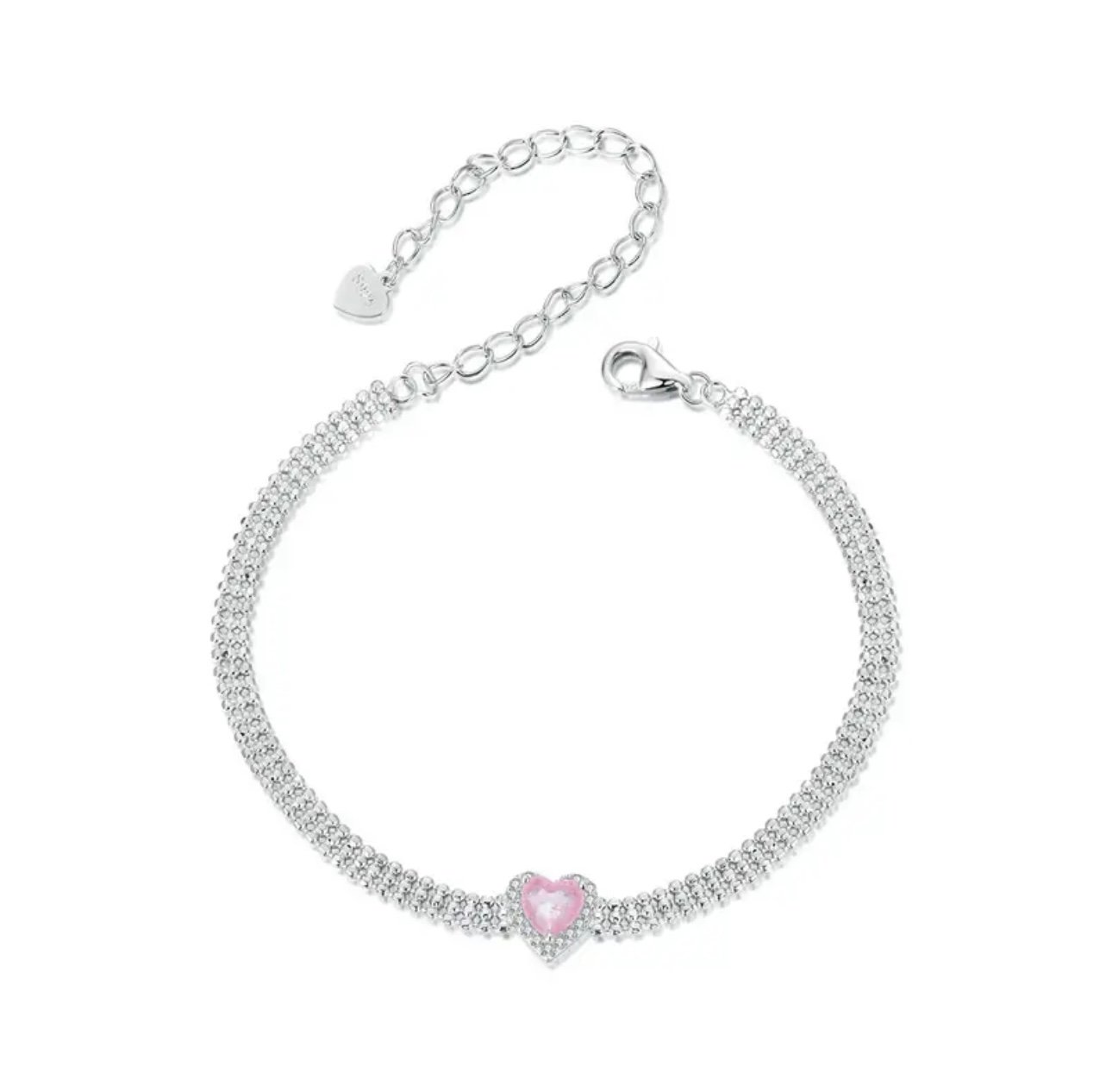 Prata 925. Pedras em Zircônia Cristal e Rosa. Comprimento da pulseira: Ajustável (15 cm + 5 cm).