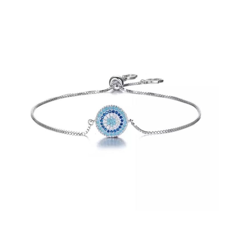 Prata 925 Pedras em Zircônia Cristal e Azul. Comprimento da pulseira: Ajustável (25cm).