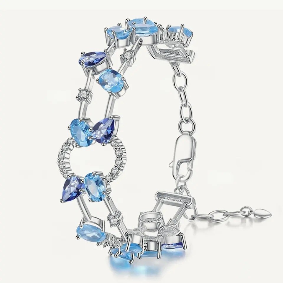 Prata 925. Pedras Principais Natural Topázio. Pedras secundárias em Zircônia Cristal. Peso: 14.66 g
